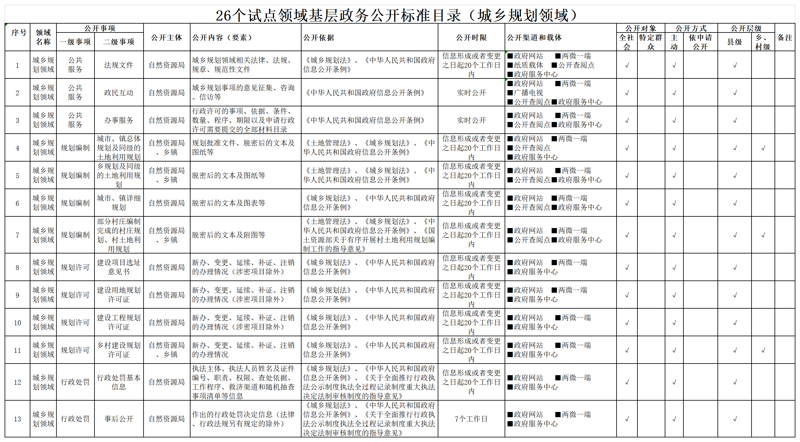 城乡规划领域政务公开事项标准目录.xls