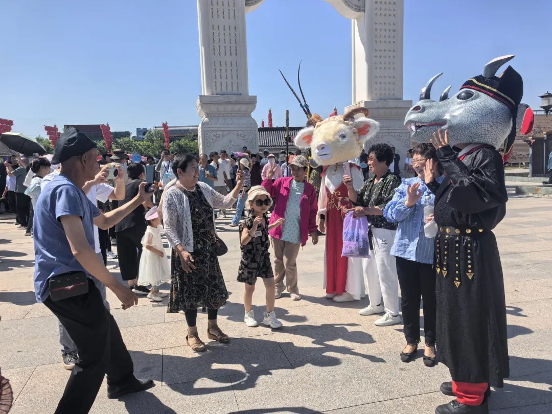 在莲花牌坊下,12位身着汉服的“花神”踏香启程,“花神赐福巡游”将活动推向高潮。“疯狂动物城巡游”为传统景区注入潮流活力,动画角色与游客击掌互动,现场欢笑声与相机快门声此起彼伏。最震撼的莫过于“奇幻麒麟,魅力景区行”演出,机甲麒麟在人群中灵活行走、喷雾巡游,金属质感的麟甲与古城交织成奇幻画面。