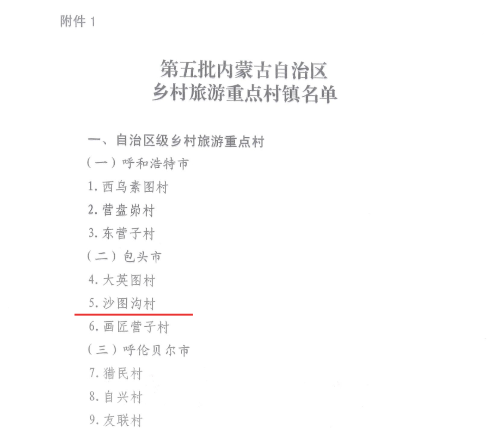 1月6日,内蒙古自治区文化和旅游厅发布《关于公布第五批自治区乡村旅游重点村镇及2025年度自治区级旅游休闲街区名单的通知》,土右旗美岱召镇沙图沟村成功入选自治区级乡村旅游重点村。