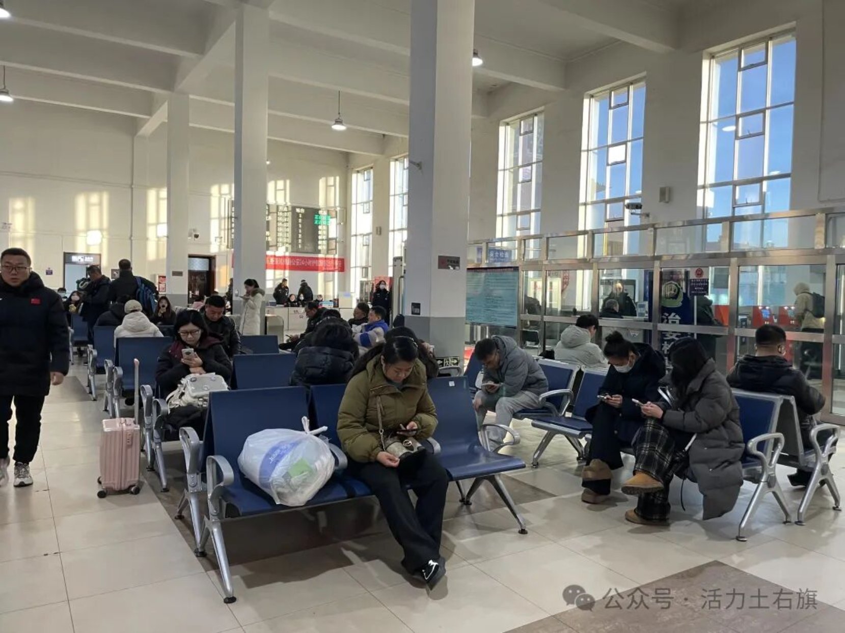 记者在萨拉齐站看到,不少旅客早早来到候车大厅等待出行。