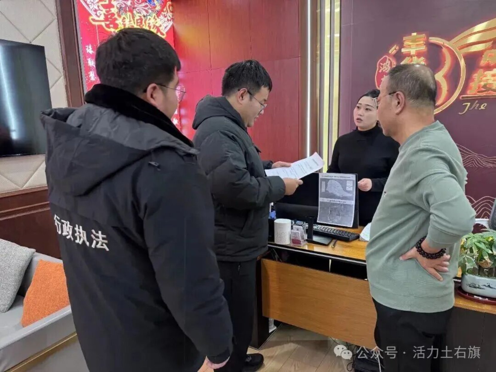 近日,包头市生态环境局土右旗分局联合旗公安局、应急管理局、市场监督管理局等部门,组建专项检查组,对辖区内宴会酒店等重点场所开展烟花爆竹禁燃禁放工作落实情况专项检查,筑牢春节期间安全环保防线。