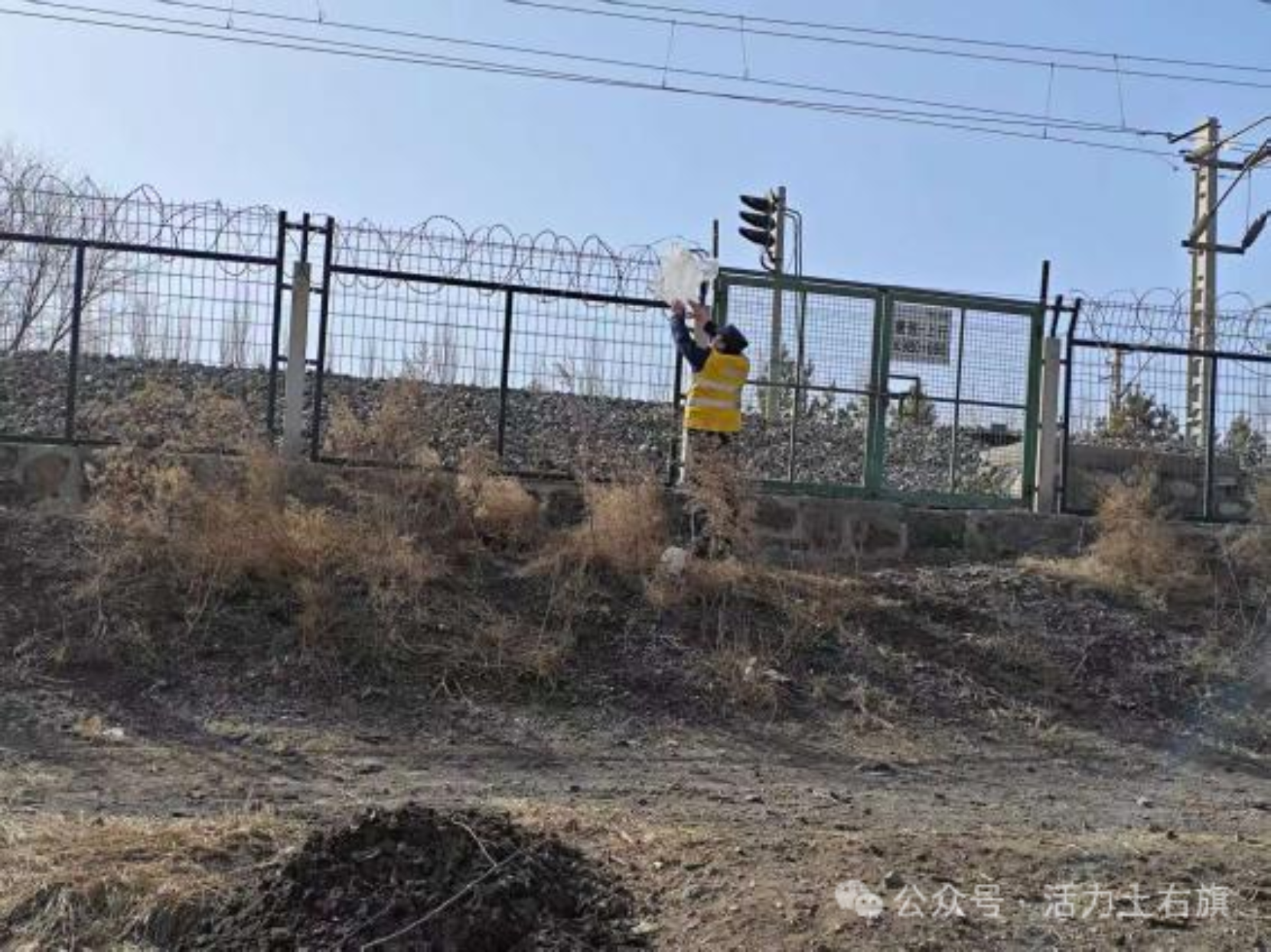 在做好群众服务、凝聚护路合力的同时,萨拉齐护路联防分队也紧盯铁路运行安全核心隐患,精准发力开展专项整治。工作人员告诉记者,春季大风天气频发,铁路沿线塑料袋、地膜、农用滴灌带等各类轻飘物,已成为威胁接触网安全和列车运行秩序的重要隐患。为从源头上杜绝“轻飘物挂网”事故,切实保障铁路大动脉畅通,萨拉齐护路联防分队集中力量,在管辖线路内开展了“清飘物、整环境”专项整治行动。