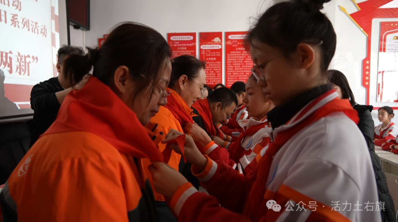 活动中,回民社区为新就业群体代表颁发了“土右旗社区志愿监督员”聘书,聘请他们担任基层治理“流动探头”,以日常穿梭城市街巷的优势,助力社区精细化治理。团旗委相关负责人为新就业群体代表送上慰问品,孩子们则亲手为“新时代雷锋”佩戴了小红花和红领巾,以最纯真的方式致敬身边的新时代雷锋。随后,学生、新就业群体等整齐列队,庄严宣誓,许下传承雷锋精神、践行志愿服务的承诺。活动结束后,复兴小学的孩子们走进社区,主动帮孤寡老人擦玻璃、打扫卫生,用实际行动践行新时代红领巾的责任与担当。