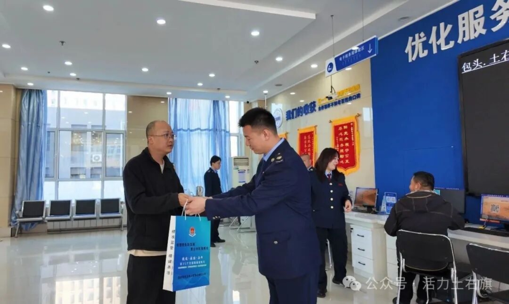 活动启动仪式结束后,纳税企业、缴费人代表及税收营商环境监督员在工作人员引导下,走进国家税务总局土右旗税务局办税服务大厅,体验了智能办税终端操作、线上征纳互动等便捷服务,详细了解了涉税业务办理全流程。