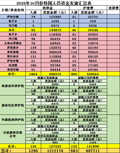 各乡镇(管委会)2025年10月份城乡特困人员资金发放名单