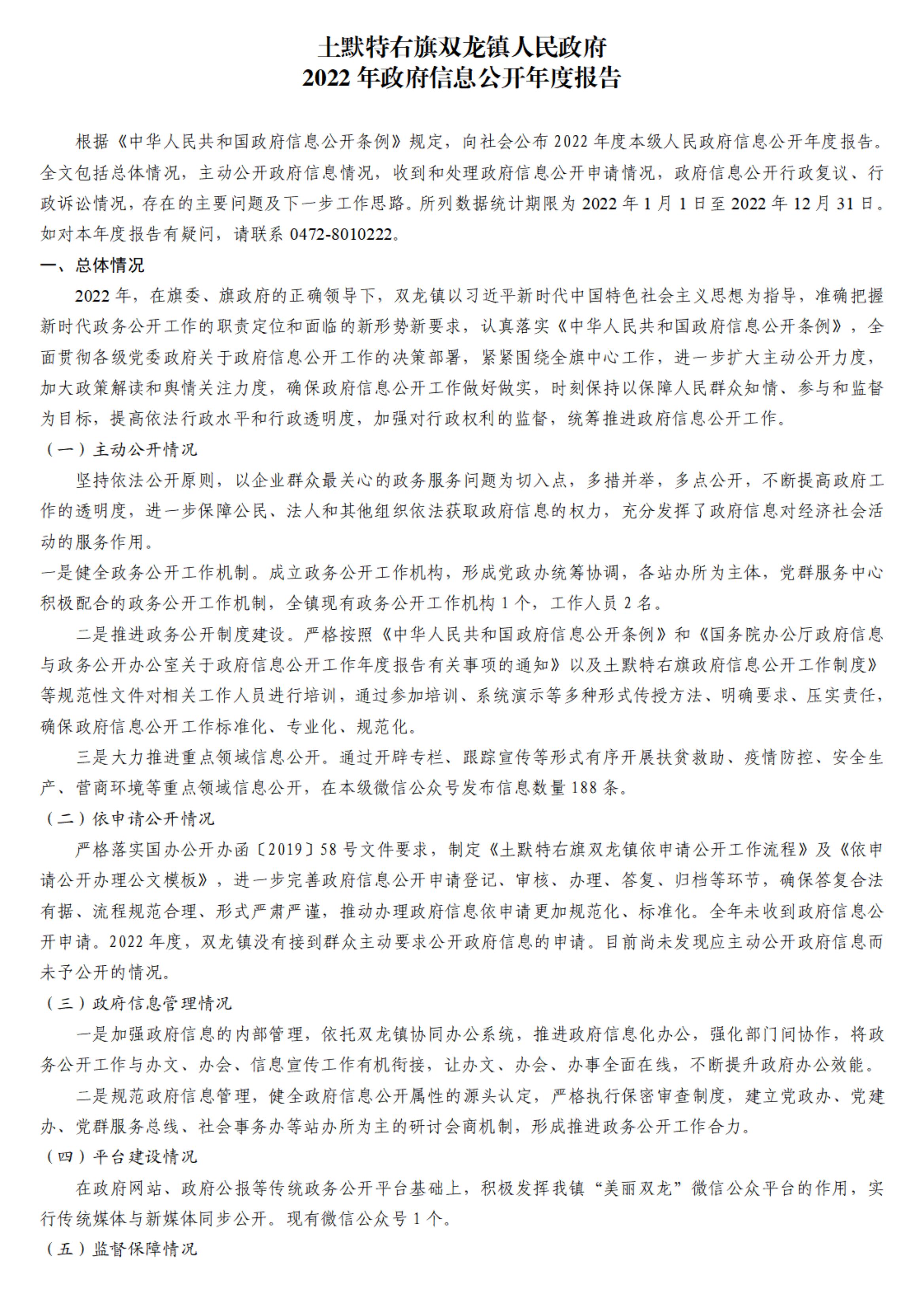 土右旗双龙镇2022年政府信息公开报告.pdf